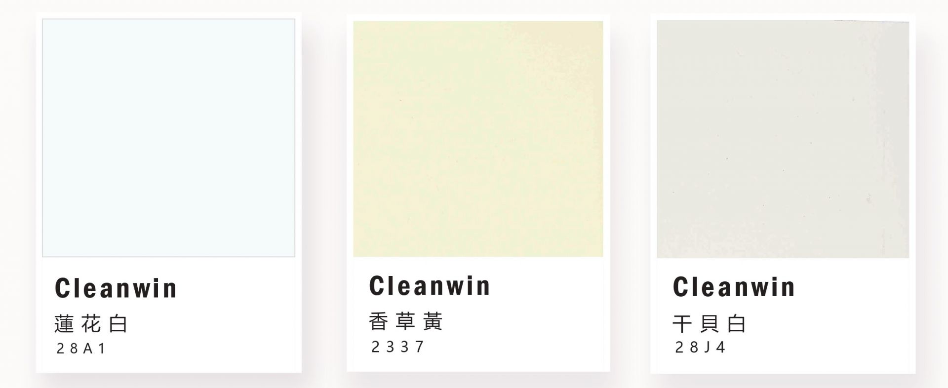 基本色為市面上最常見的庫板顏色, 多用於廠房隔間, 主要為蓮花白、香草黃、干貝白這三種,應用範圍廣泛, 可依照個人喜好選適合的顏色。