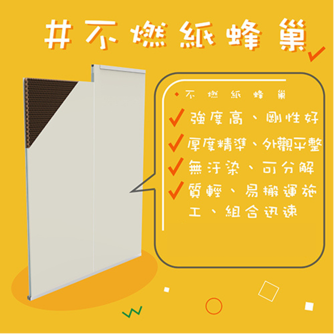 3.紙蜂巢: 紙材使用長效防火纖維--耐燃二級紙, 價格最為經濟實惠, 多用於一般無須特殊功能之場所,